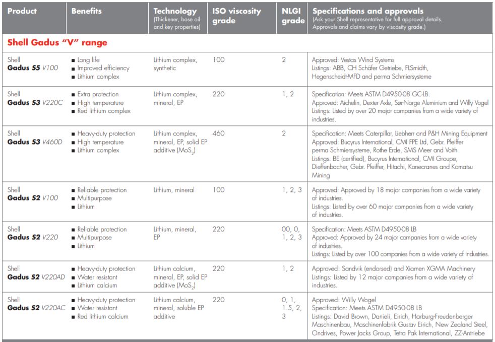 · Shell Gadus S3 T100 greases have a superior high temperature
