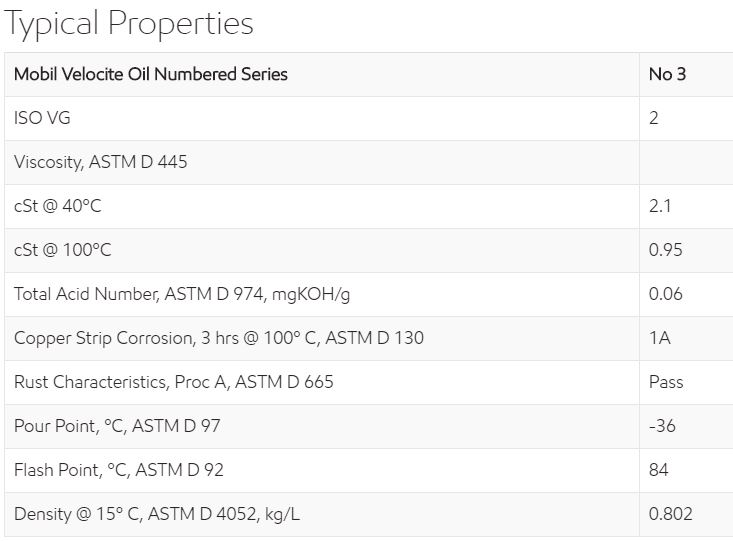 - Mobil Velocite Oil No 3 is recommended for "zero clearance" type spindle bearings which operate with extremely close clearances