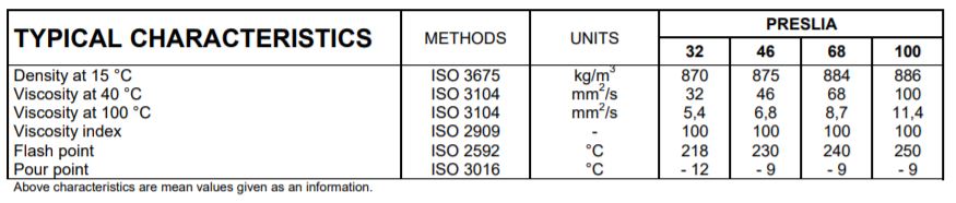- Depending on their viscosity grade, PRESLIA oils meet the requirements of the following classifications and specifications :